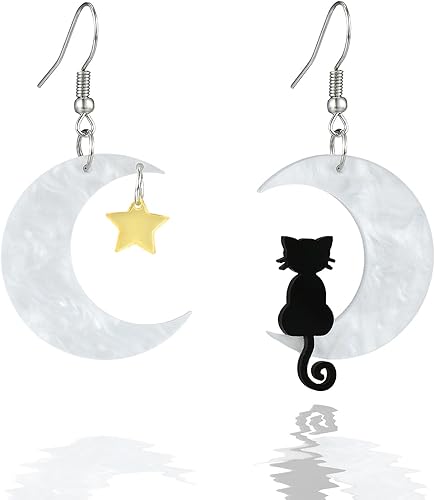 Halloween Cute Acrylic Earrings for Women - Cat Moon & Star Design, Spooky Costume Accessories, Dangle Drop Earrings, Party Favors & Holiday Gifts