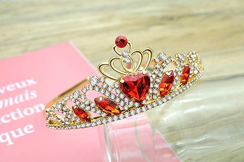 Evie Red Heart Crown and Necklace Descendant 3 Gold Tiara Jewelry Set Queen of Hearts Gift for Party