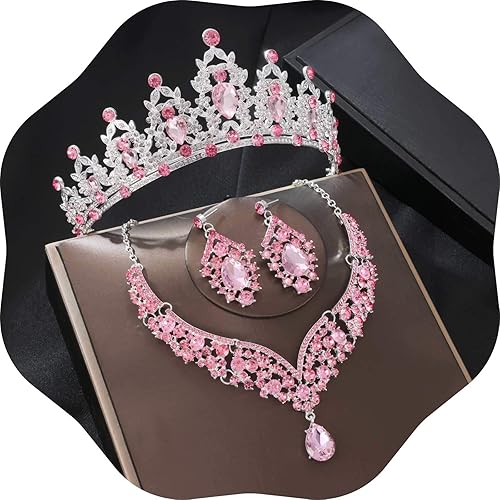Kamirola Bridal Wedding Tiara Crown Jewelry Set for Women/Brides/Bridesmaids Crystal Jewelry Set for Wedding Prom Party Bridal Crystal Necklace Earrings Bracelet Set(TR60)