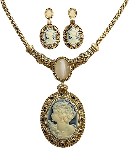 Dreams-Mall& Cameo Collection Necklace Earrings with Gemstone Chunky Victorian Antiqued Vintage Jewelry for Women