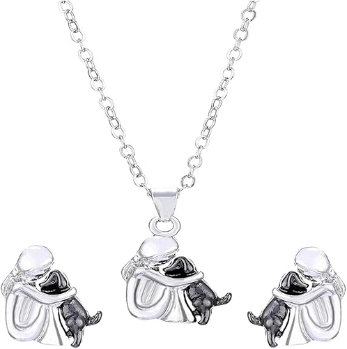 Woman and Dog Hug Stud Earrings for Women Jewelry Set Cute Puppy Necklace Earrings Set for Pet Lover Jewelry Women Cuddle Puppy Pendant Necklace