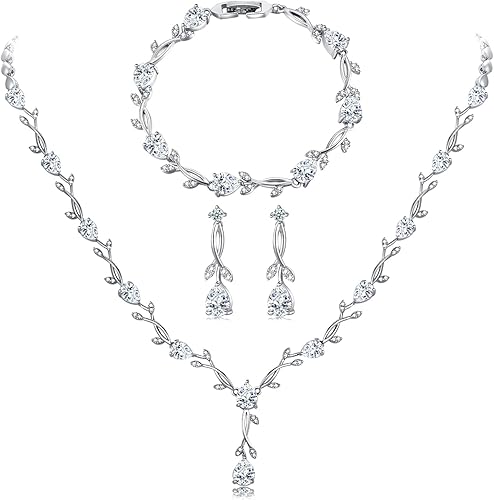 Wedding Silver Jewelry Set for Women Cubic Zirconia Necklace Earrings Bracelet Sets for Bride Wedding Costume Jewelry for Bridesmaid
