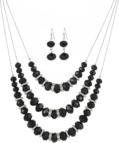 Multi Layered Sparkly Crystal Necklaces and Earrings for Women Shiny Beaded Statement Necklace Set Fashion Costume Jewelry Gifts