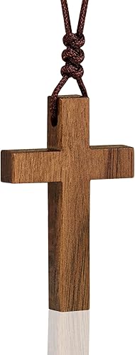 Natural Walnut Wood Cross Necklace for Men & Women - Small Wood Cross Pendant Necklace for Car Mirror - Wooden Religious Pendant Jewelry