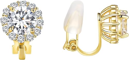 Clip on Earrings for Women, 14K Real Gold Plated Non Pierced Hoop, Clip on Hoops for Non Pierced Ears Gold and White Gold