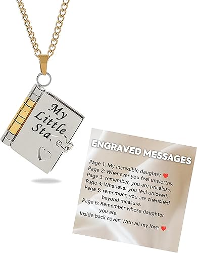 A Lifetime of Love, Engraved Forever – This delicate mini book necklace holds a powerful message inside: "To my beautiful daughter, when you feel overwhelmed, don't forget that you are my daughter. You are the most special star in the universe. Always believe in yourself. Love you always." A daily reminder of your unbreakable bond.