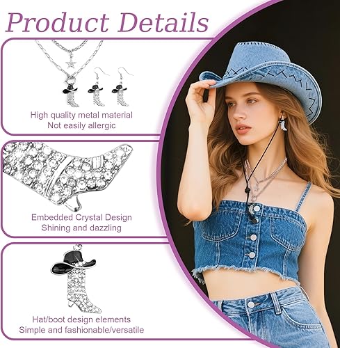 Exquisite design: The necklace and earring design of denim boots combined with a stackable star shaped necklace make you look very fashionable and full of Western style.