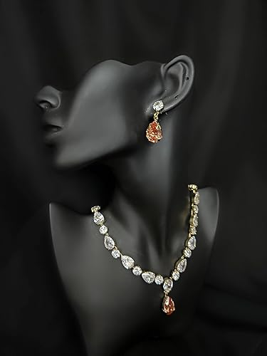 Complete Bridal Jewelry Set – Includes a shimmering necklace, elegant earrings, and a matching bracelet, all adorned with dazzling cubic zirconia stones for a luxurious, bridal-ready look.