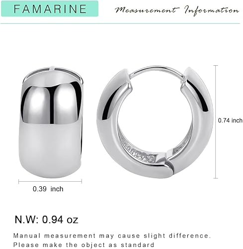Thick Wide Huggie Hoops: The chunky hoops diameter is 20 mm/0.8 in, width is 11 mm/0.43 in, single weight is 0.19 oz/0.4 g. This earrings are a bit heavy. Lead and nickel-free. Easy to wear while putting on and taking off your mask