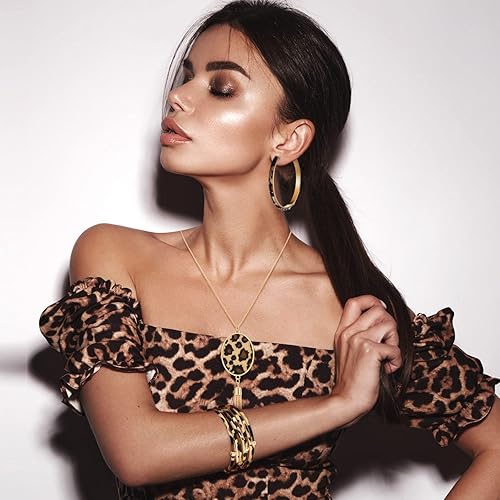 Women's Jewelry Sets: leopard print patterns are stylish and charming, this necklace and earring set can modify your face shape, and highlight your whole look, easy to match with a variety of clothes, and win a lot of compliments