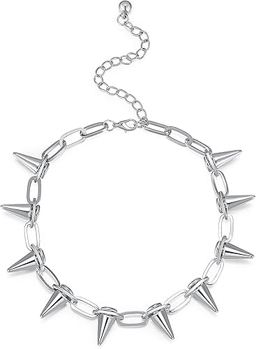 Material of Spike Chain Choker - High quality alloy, The surface of spiked necklace is electroplated, Exquisite workmanship, Good color retention, Not easy to fade. Which is friendly to the skin. Streetwear punk choker necklace suit for women and men.