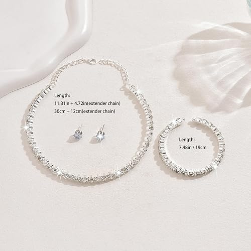 Elegant Jewelry Set: This set includes a sparkling tennis necklace, matching bracelet, and dazzling stud earrings, creating a cohesive and sophisticated look for any occasion