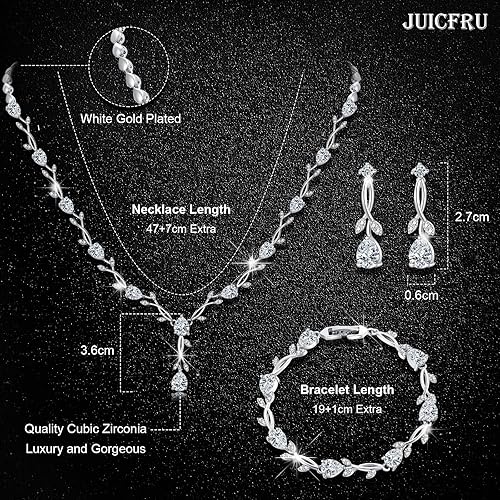 High Quality Material: This flower wedding jewelry set for bride is made of 14K white gold plated and crystal cubic zirconia. The size of this drop dangle earring is 2.7cm * 0.6cm. The necklace & bracelet length are 47+7cm & 19+1cm.