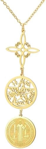 [Powerful Triple Protection Symbolism] This pendant is a sacred blend of powerful esoteric symbols. It features the unifying Celtic Witch's Knot, the divine Tetragrammaton Pentagram, and the revered St. Benedict Medal, creating a potent talisman for spiritual protection, strength, and connection.